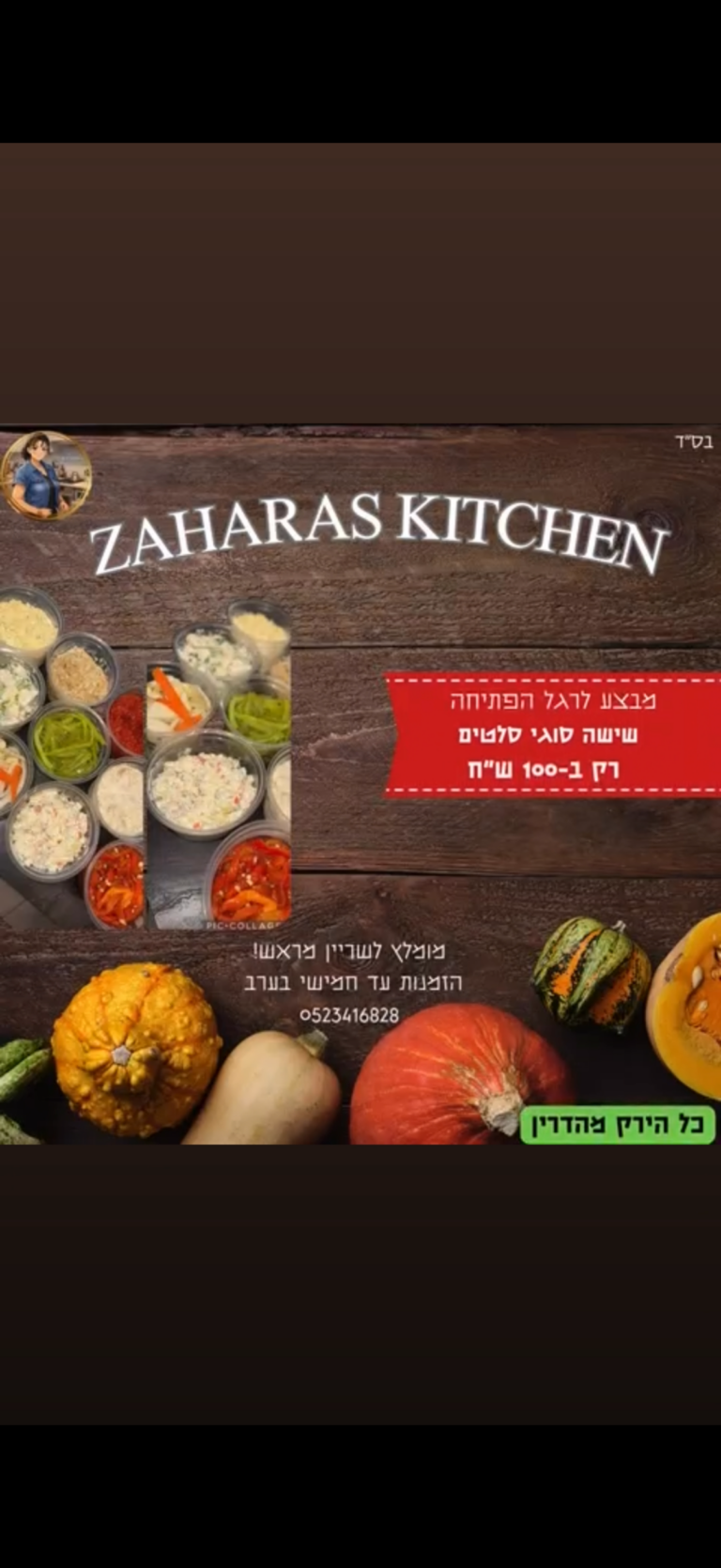 לפרטים נוספים והזמנות – 0523416828